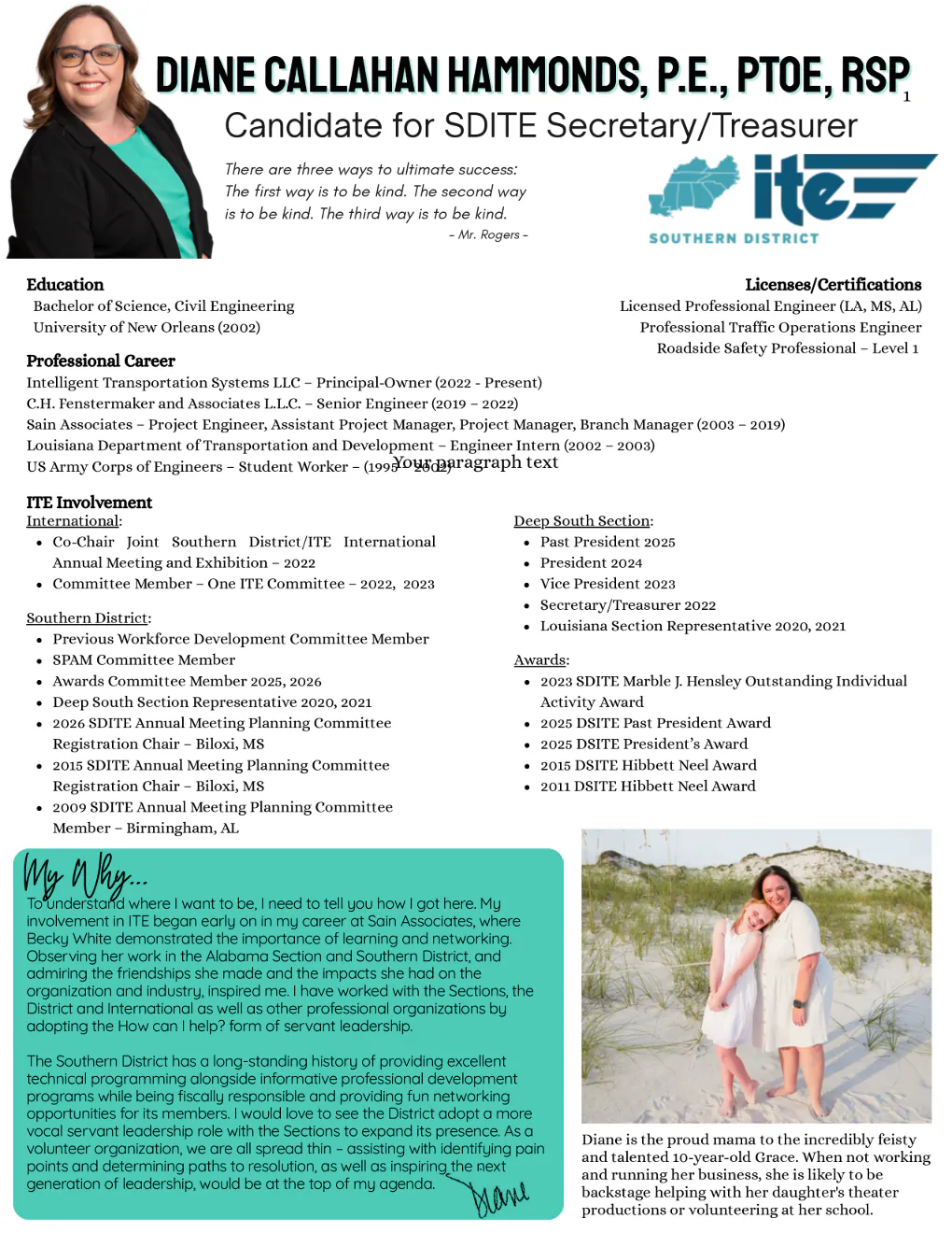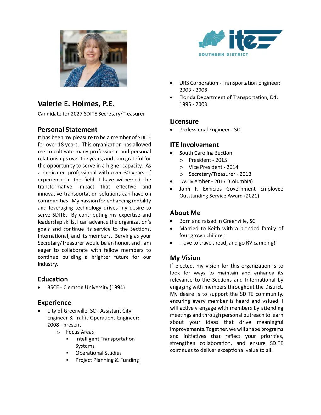 | Secretary-Treasurer | Diane Hammonds, P.E., PTOE, RSP1 Valerie Holmes, P.E. |
